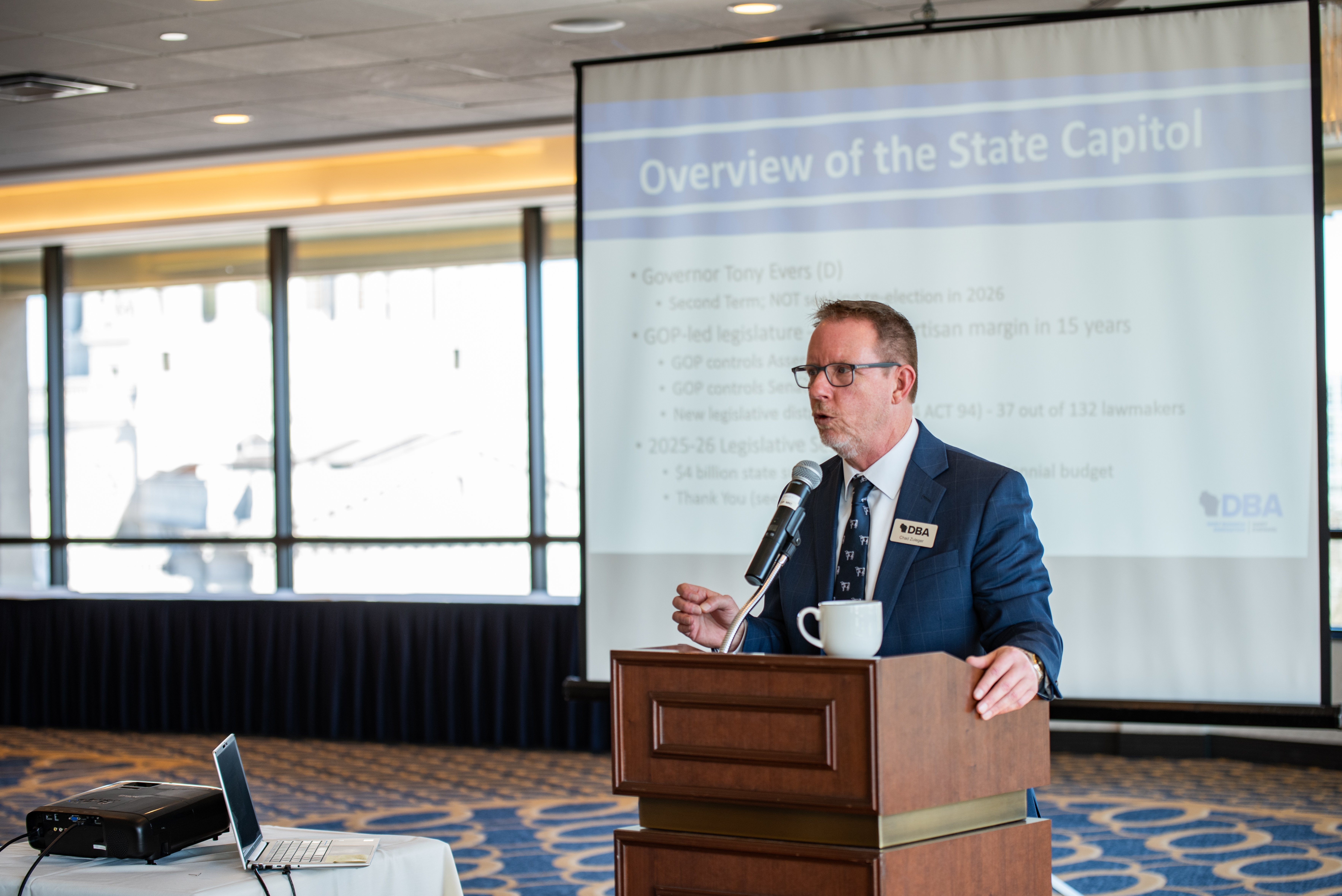 Chad Zuleger, executive director of the Dairy Business Association, spoke about the economic pressures facing Wisconsin dairy farmers and how DBA’s legislative priorities fit within the state’s broader fiscal picture, including a projected budget surplus and ongoing tax policy discussions. He highlighted dairy innovation investments, veterinary loan relief and the need to avoid major fee increases that would add costs to farms during a challenging dairy economy.